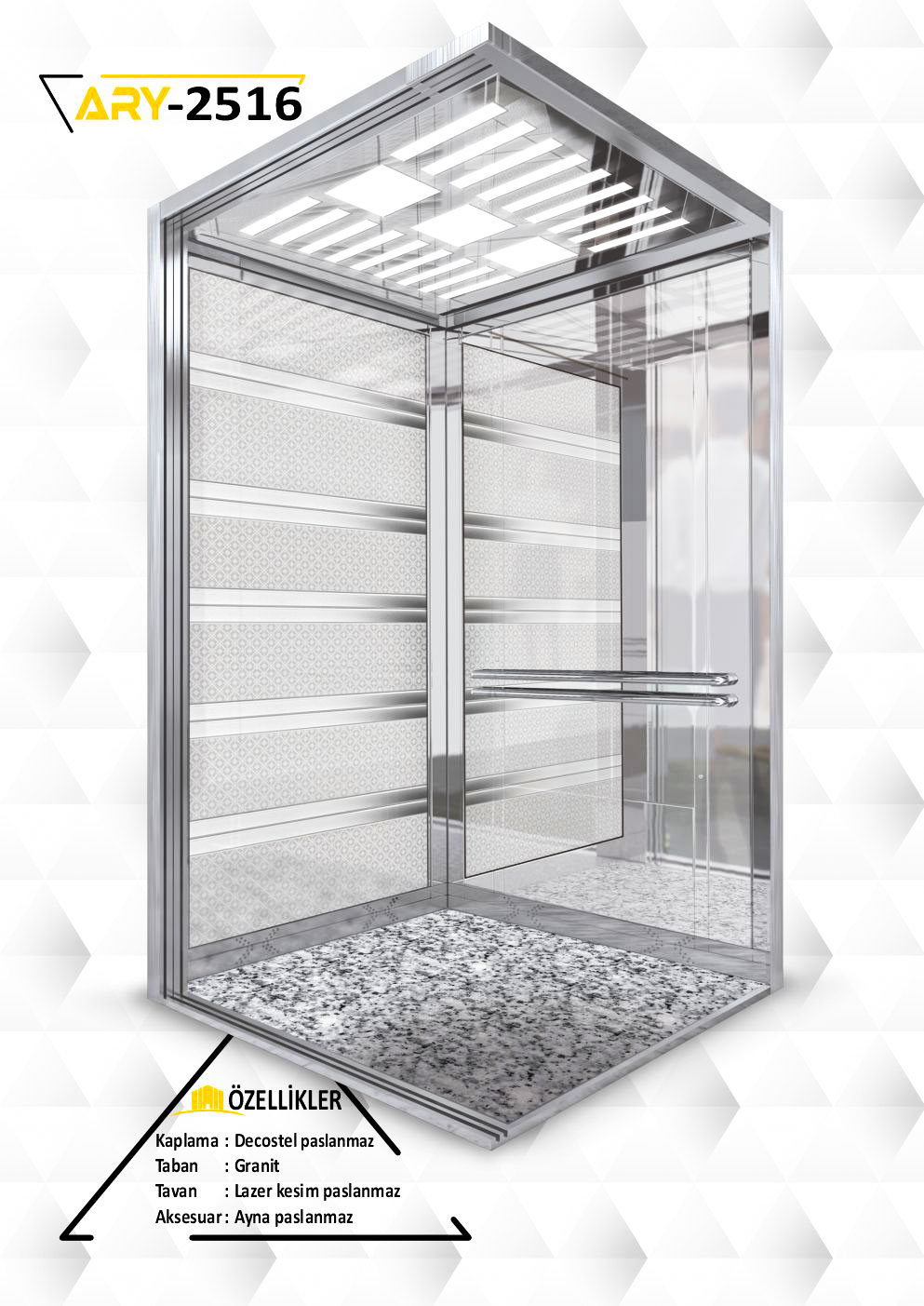 Asansör kabini ve tüm ekipmanlarını modern teknolojiyle, yüksek